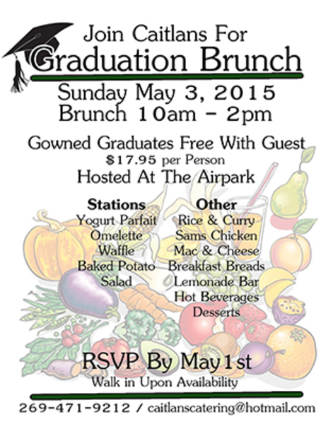 RSVP by May 1. Walk-in upon availability. View attachment for menu details.