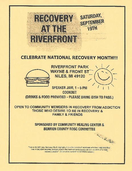 On September 19th from 1-5pm you can join the Community Healing Center & Berrien County ROSC Committee at Riverfront Park on Wayne and Front Stret in Niles, MI.