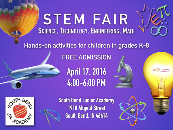 South Bend Junior Academy presents the 2016 STEM Fair. This interactive event will feature hands-on activities for students in grades K-8.