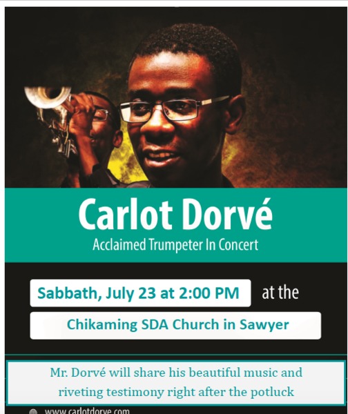 Join us this Saturday afternoon, July 23 at 2 p.m. for a concert with acclaimed trumpeter, Carlot Devoré.