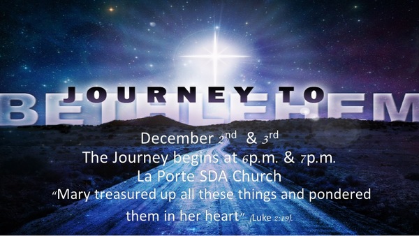 The La Porte Seventh-day Adventist Church in La Porte Indiana, is holding their annual Journey to Bethlehem live nativity program. All are welcome to come celebrate the holiday season with us by enjoying this free program Friday and Saturday evening December 2nd and 3rd with two showings, one at 6p.m. and another at 7p.m. central time.