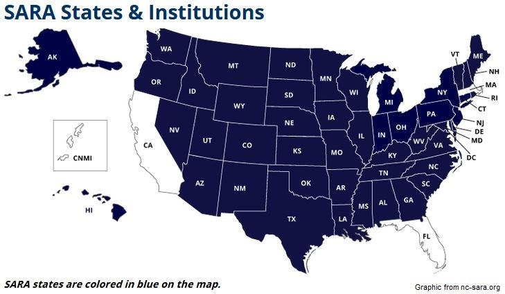 Currently all states except California, Florida and Massachusetts are participating in SARA. SARA covers online courses, internships, limited seminars, advertising, in-state distance education faculty, and recruiting in the participating states. So, the university may sponsor these specified activities in the states that are members of SARA, without incurring extra costs or paperwork. However, if you would like to sponsor an unlisted activity in a SARA state, or an activity in a non-SARA state, please contact Ethan Jones, the Director of Compliance for the School of Distance Education, by e-mailing him at ethanj@andrews.edu. Please also check our webpage for current information: www.andrews.edu/distance/about/compliance.
