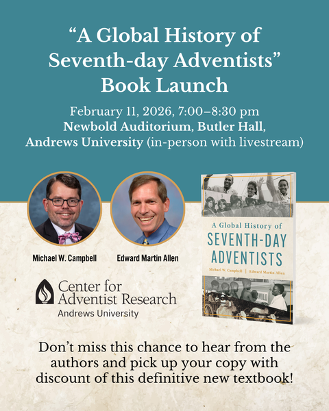 Join us for an enlightening evening with authors Michael W. Campbell and Edward Martin Allen as we celebrate the release of their new work, A Global History of Seventh-day Adventists. While previous studies have largely focused on the denomination's 19th-century North American origins, Campbell and Allen offer a broad chronological and geographic scope. They rigorously trace the transmission of Adventist theology and culture across the continents of Africa, Asia, Europe, and Australia, analyzing the church’s contributions to global education, social reform, and medicine.