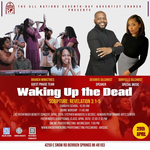 The All Nations Church family invites you to worship with us as our guest speaker, Devonte Gilchrist presents on the topic “Waking up the Dead”. Sabbath school begins... read more
